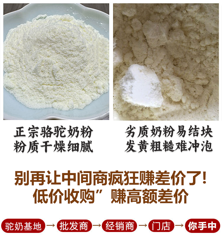 一、奶源纯正:只卖新疆古和新疆骆驼奶粉,绝不用南方骆驼粉、江西骆驼粉以次充好;